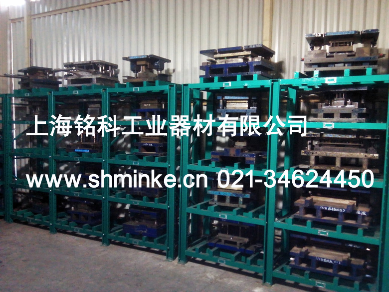 固定式模具架多用于沖壓模存放,沖壓模模具架因其形狀多數是長形,所以多半做成固定式的,配合叉車上下模也可到達節省空間的目的