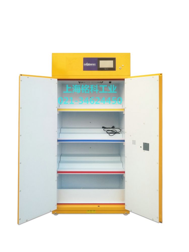 單層鋼板結構,柜體上下左右內襯瓷白PP板材增強柜身耐腐蝕性,鋼板與PP板材之間填充保溫隔熱作用的防火材料。柜體采用1.2 mm的優質冷軋鋼板,柜體底座采用2.0mm的冷軋鋼板,內外表面經酸洗磷化處理,表面通過環氧樹脂靜電噴涂,達到防酸堿及防銹之效果。柜體背部有防火防爆進風口,柜體頂部有出風口,可手動調節關閉進風口和排風口。柜體底部有160mm高度漏液槽(可做黃沙填埋腔),柜底部裝有2個手動調節螺桿